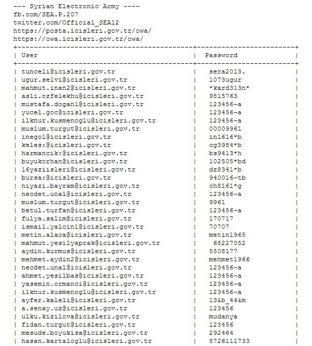 Χάκερς υποστηρίζουν ότι παραβίασαν την ιστοσελίδα του τουρκικού υπουργείου Eσωτερικών και ότι απέκτησαν πρόσβαση σε πληροφορίες, e-mails, τηλέφωνα και κωδικούς πρόσβασης του προσωπικού του πρωθυπουργικού γραφείου.