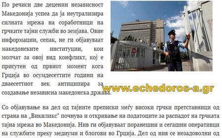 Μετά από σχεδόν δύο δεκαετίες της ανεξαρτησίας του νοτιοσλαβικού κράτους, κατορθώθηκε να εξουδετερωθεί το ισχυρό δίκτυο συνεργατών ελληνικών μυστικών υπηρεσιών στη χώρα, γράφει το σλαβικό δημοσίευμα των Σκοπίων.