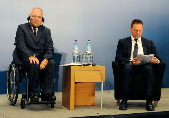 Σε ομιλία του σε εκδήλωση του ελληνογερμανικού Εμπορικού και Βιομηχανικού Επιμελητηρίου, ο κ. Σόιμπλε απηύθυνε ταυτόχρονα σύσταση για διαρθρωτικές μεταρρυθμίσεις στον δημόσιο τομέα, τον οποίο χαρακτήρισε ως ένα από τα προβλήματα της Ελλάδας. (λόγω και της γραφειοκρατίας, είπε, ενώ έφερε ως παράδειγμα ότι το δικό του γραφείο στη Γερμανία παρέχει εκπαίδευση σε εφοριακούς).