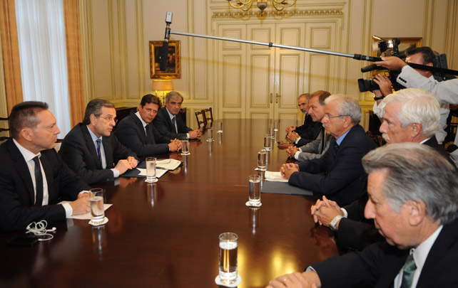 Η συμφωνία για την εθελοντική φορολόγηση των Ελλήνων εφοπλιστών, μέσω του μοντέλου του φόρου χωρητικότητας στα πλοία, προκειμένου να ενισχυθούν τα δημοσιονομικά έσοδα της χώρας σε αυτή την κρίσιμη περίοδο, υπεγράφη σήμερα μεταξύ του πρωθυπουργού Αντώνη Σαμαρά και του προέδρου της Ένωσης Ελλήνων Εφοπλιστών Θεόδωρου Βενιάμη, ως εκπροσώπου της Ελληνικής Ναυτιλιακής Κοινότητας, παρουσία των υπουργών Οικονομικών Γιάννη Στουρνάρα και Ναυτιλίας και Αιγαίου Μιλτιάδη Βαρβιτσιώτη.