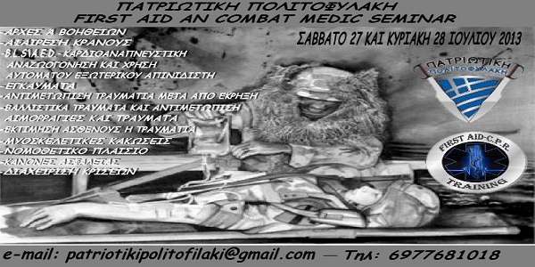 ΣΕΜΙΝΑΡΙΟ+ΠΡΩΤΩΝ+ΒΟΗΘΕΙΩΝ Published 24 Ιουλίου, 2013 at 600 × 300 in ΣΕΜΙΝΑΡΙΟ ΠΡΩΤΩΝ ΒΟΗΘΕΙΩΝ ΚΑΙ ΔΙΑΣΩΣΗΣ ΜΑΧΗΣ – FIRST AID AND COMBAT MEDIC SEMINAR