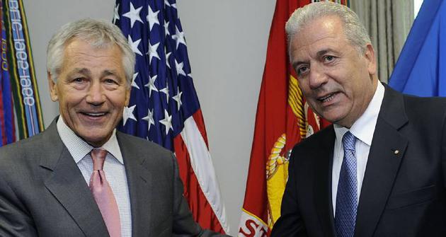 Η Ελλάδα στον γεωστρατηγικό χάρτη των ΗΠΑ παραμένει το «μακρινό σύνορο» στη Νοτιοανατολική Μεσόγειο, γεγονός που σημαίνει ότι το αμερικανικό έθνος θεωρεί ότι έχει ζωτικά συμφέροντα στην περιοχή και ως εκ τούτου επιδεικνύει την απαιτούμενη προσοχή και παροχή βοήθειας.Αυτό εν ολίγοις είναι το γενικό συμπέρασμα που εξαγάγεται από την επίσημη επίσκεψη του Δ. Αβραμόπουλου στην Ουάσιγκτον και τις επαφές που είχε στο Πεντάγωνο με τον Αμερικανό ομόλογό του Τσακ Χέιγκελ.Η Ελλάδα με την Κρήτη και τις βάσεις της εξακολουθεί να λειτουργούν ως το «αεροπλανοφόρο» της Αμερικής στην ευρύτερη περιοχή, που στρατιωτικά αποκτά μεγαλύτερο ενδιαφέρον στην παρούσα περίοδο λόγω των δραματικών εξελίξεων στη Συρία και την Αίγυπτο. Μπορεί η κυβέρνηση Ομπάμα να μην έχει στα άμεσα σχέδιά της στρατιωτική εμπλοκή στη Συρία, ωστόσο παραμένει επί ποδός πολέμου, έτοιμη για παν ενδεχόμενο.