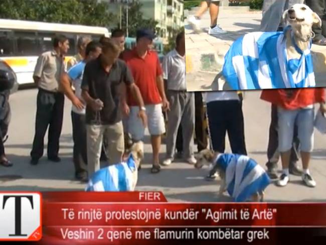 e836b0a93da6ed5602fdda48a95fbf74_XL Published 14 Αυγούστου, 2013 at 650 × 488 in Σοκ! Αλβανοί εθνικιστές έντυσαν σκυλιά με την ελληνική σημαία (video)