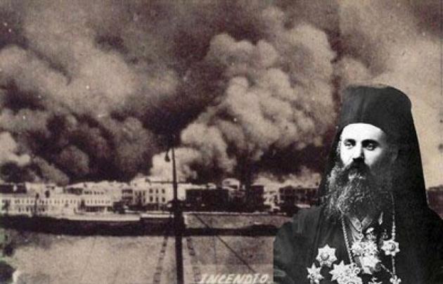 Εκεί υπέστη τα χειρότερα βασανιστήρια. Τον λιθοβόλησαν φωνάζοντας “Kiopein Paralassi” (ξεσκίστε τον το σκύλο) και οι δήμιοι του, μεταξύ των οποίων ήταν και παιδιά, πήραν από ένα τμή μα του διαμελισμένου σώματος του και το περιέφεραν σε διάφορες συνοικίες ουρλιάζοντας. Στη συνέχεια λεηλάτησαν αλύπητα τη μητρόπολη. Πολλούς από τους ιερείς που τους έσερναν απ’ τις γενειάδες, τους βασάνισαν εκεί. Αυτή η απόπειρα εναντίον τού κλήρου των Ορθοδόξων είναι ενδεικτική. Δεν επρόκειτο πλέον για αντίποινα εναντίον προσώπων, αλλά για μια καθαρή έκρηξη μου σουλμανικού φανατισμού. Την ίδια μέρα δύο διευθυντές εφημερί δων της Σμύρνης, οι κύριοι Τσουρουκτσόγλου και Κλημάνογλου, θανατώθηκαν με βάναυσο τρόπο, καθώς σέρνονταν από αυ τοκίνητο, στο πίσω μέρος του οποίου ήταν δεμένοι από τα πόδια.