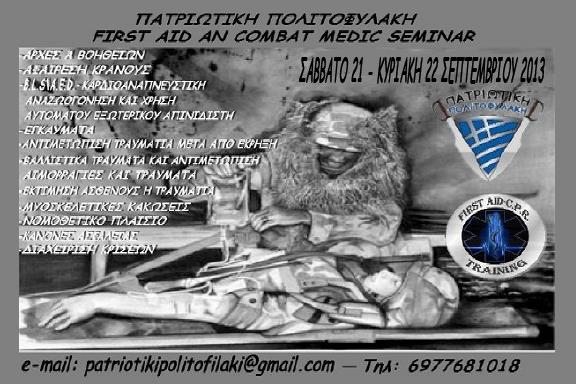 ΝΕΟ+ΣΕΜΙΝΑΡΙΟ Published 16 Σεπτεμβρίου, 2013 at 576 × 384 in ΣΕΜΙΝΑΡΙΟ ΠΡΩΤΩΝ ΒΟΗΘΕΙΩΝ ΚΑΙ ΔΙΑΣΩΣΗΣ ΜΑΧΗΣ – FIRST AID AND COMBAT MEDIC SEMINAR
