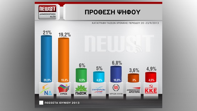 dimoskopisi_newsit_630_355 Published 25 Σεπτεμβρίου, 2013 at 630 × 355 in Αποκαλυπτική δημοσκόπηση της Alco για το Newsit: Μεγάλη πτώση της Χρυσής Αυγής μετά τη δολοφονία στο Κερατσίνι