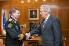 Ο Υπουργός Εθνικής Άμυνας Δημήτρης Αβραμόπουλος δέχθηκε σήμερα σε εθιμοτυπική συνάντηση στο Υπουργείο Εθνικής Άμυνας τον Αρχηγό του Πολεμικού Ναυτικού της Ρωσικής Ομοσπονδίας, Ναύαρχο Viktor Chirkov, ο οποίος επισκέπτεται την χώρα μας στο πλαίσιο των εορταστικών εκδηλώσεων για τη συμπλήρωση 185 χρόνων Ελληνορωσικών διπλωματικών σχέσεων.