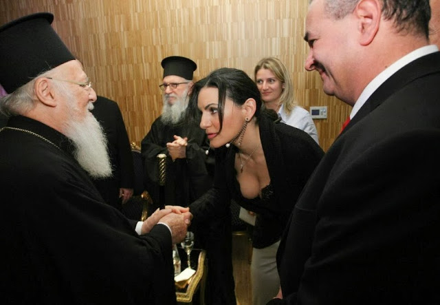 Ναι, το είδαμε κι αυτό: Το βαθύ «μπούστο» της Ολγας Κεφαλογιάννη να σκύβει μπροστά στον Πατριάρχη και να απελευθερώνεται υπερήφανο με τον Βαρθoλομαίο να μένει άφωνος!