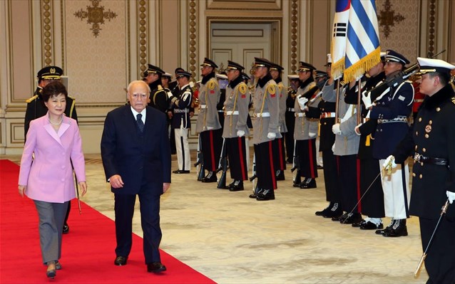 Την έμπρακτη ανταπόκριση της Σεούλ στη δύσκολη περίοδο που διέρχεται η Ελλάδα, ζήτησε ο Πρόεδρος της Δημοκρατίας, Κάρολος Παπούλιας, κατά την αντιφώνησή του προς την πρόεδρο της Νότιας Κορέας, σε δείπνο που παρέθεσε η κ. Παρκ Γκέουν-Χάι προς τιμή του.