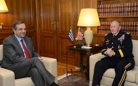 Με τον αρχηγό των Ενόπλων Δυνάμεων των ΗΠΑ, Μάρτιν Ντέμπσεϊ συναντήθηκε σήμερα στο Μέγαρο Μαξίμου ο πρωθυπουργός, Αντώνης Σαμαράς.
