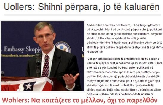 Ο Αμερικανός πρέσβης στα Σκόπια, PaulWohlers, προέβη σε δηλώσεις, προχθές, οι οποίες έμμεσα απευθύνονταν στην ηγεσία των Σκοπίων.