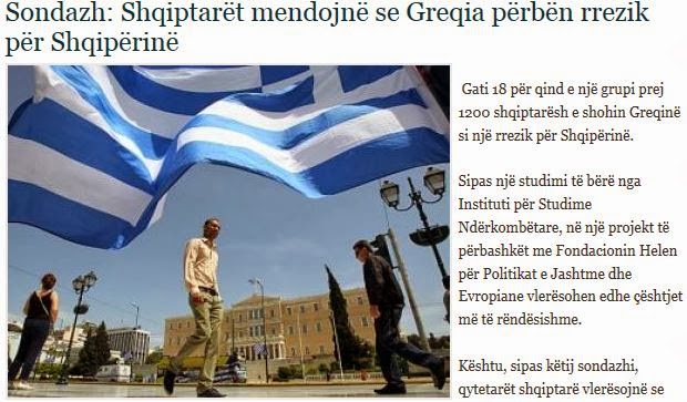 Σχεδόν το 18 τοις εκατό από ένα σύνολο 1.200 Αλβανών, βλέπει ότι η Ελλάδα αποτελεί κίνδυνο για την Αλβανία.