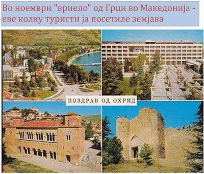 Σύμφωνα με τα στατιστικά στοιχεία, στους ξένους ταξιδιώτες που επισκέφθηκαν το νοτιοσλαβικό κράτος, κατά το μήνα Νοέμβριο του περασμένου έτους, την πρωτιά την έχουν οι Έλληνες σε επισκέψεις και σε διανυκτερεύσεις.«Το Νοέμβριο του περασμένου έτους, την FYROM επισκέφθηκαν από την Ελλάδα 3.765 ταξιδιώτες, από την Τουρκία 2.750, από τη Σερβία 1976 και από τη Βουλγαρία 1715.