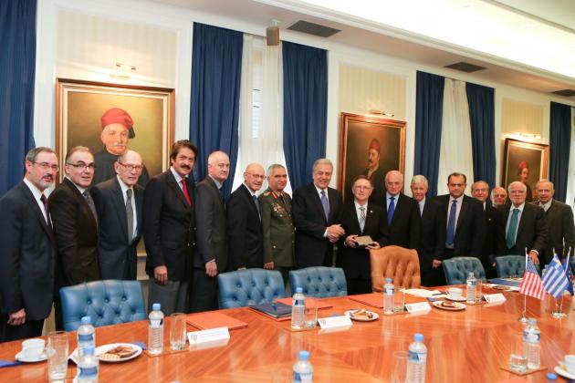 Στο μεταξύ ο Υπουργός Εθνικής Άμυνας Δημ. Αβραμόπουλος – παρόντος και του Αρχηγού ΓΕΕΘΑ στράτηγού Μιχ. Κωσταράκου – είχε τις προάλλες συναντηση στο Υπουργείο Εθνικής Άμυνας με αντιπροσωπεία εκπροσώπων από τις Ελληνο-αμερικανικές οργανώσεις ΑΗΙ και AHEPA, καθώς και Αμερικανο-εβραϊκές οργανώσεις των ΗΠΑ, στο πλαίσιο επίσκεψης που διοργανώνουν σε Ελλάδα, Κύπρο και Ισραήλ. Ο Υπουργός Εθνικής Άμυνας ενημέρωσε τις αντιπροσωπείες για τις εξελίξεις στις Ελληνοϊσραηλινές και τις Ελληνοαμερικανικές σχέσεις, καθώς και τις πρωτοβουλίες της χώρας μας ώστε να εδραιωθεί η ειρήνη, η ασφάλεια, η σταθερότητα και η συνεργασία στη Νοτιοανατολική Ευρώπη και στην Ανατολική Μεσόγειο.Στην αντιπροσωπεία εκπροσώπων από την Ελληνική και την Εβραϊκή διασπορά συμμετείχαν από το American Hellenic Institute (AHI) οι κ.κ. Νικ Λαρυγγάκης, Τζέιμς Λαγός, Κώστας Αλεξάκης και Πήτερ Μπότα. Την οργάνωση AHEPA εκπροσώπησαν οι κ.κ. Άντονι Κουζούνης, Βασίλης Μωσαΐδης, Νικ Αρουτζίδης και Άντριου Καφφές.Εκ μέρους των Αμερικανο-εβραϊκών οργανώσεων, στην αντιπροσωπεία συμμετείχαν οι κ.κ. Malcolm Hoelein, Richard Stone, Allan Jacobs, DanMariaschin, Robert Sugarman, William