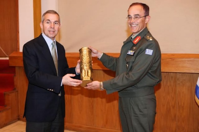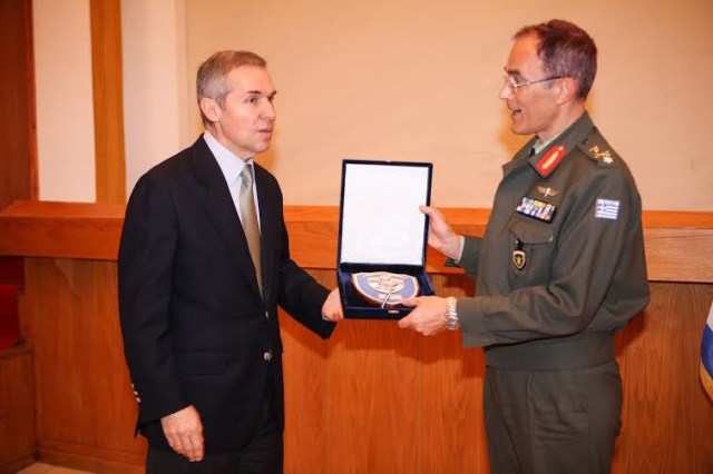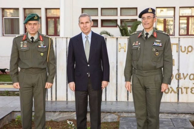 Επίσκεψη στη Σχολή Πυροβολικού στην Νέα Πέραμο Αττικής πραγματοποίησε σήμερα Τετάρτη ο Υφυπουργός Εθνικής Άμυνας Αθ. Δαβάκης.Τον κ.Υφυπουργό συνόδευαν, ως εκπρόσωποι του Γενικού Επιτελείου Στρατού, ο Α’Υπαρχηγός/ΓΕΣ Αντγος Ιωάννης Ηλιόπουλος και ο Υποδιευθυντής ΔΠΒ/ΓΕΣ Ταξχος Παππάς Λεωνίδας.Το πρόγραμμα της επισκέψεως περιλάμβανε, Απόδοση Τιμών και καλωσόρισμα από τον Ταξίαρχο Διοικητή της Σχολής Γεώργιο Καμπά, ενημέρωση επί της αποστολής και των δραστηριοτήτων της ΣΠΒ στην αίθουσα Τιμών, ξενάγηση στο υπαίθριο και στο ανακαινισμένο στεγασμένο χώρο του μουσείου τον οποίο και εγκαινίασε ο κ. ΥΦΕΘΑ. Στη συνέχεια έγινε παρουσίαση του εξομοιωτή παρατηρούμενων βολών, επίδειξη εκπαίδευσης με σύζευξη του εξομοιωτή παρατηρούμενων βολών ηλεκτρονικά με τα πυροβόλα, καθώς επίσης και η νεοεφαρμοζόμενη τακτική του Πυροβολικού «Βάλλω και Μετακινούμαι». Ακολούθησε επίδειξη του συστήματος Τακτικού και Τεχνικού Ελέγχου Πυρός (ΣΤΤΕΠ) «ΔΙΑΣ» και περιήγηση στους χώρους της Σχολής ,στον Ιερό Ναό της Αγίας Βαρβάρας,προστάτιδας του όπλου του Πυροβολικού και στο Μνημείο Πυροβολητή.Τέλος,στο Αμφιθέατρο της Σχολής, ο κ. ΥΦΕΘΑ χαιρέτησε το στρατιωτικό- πολιτικό προσωπικό και τους εκπαιδευόμενους και έγινε ανταλλαγή αναμνηστικών δώρων με τον Δκτή της Σχολής Πυροβολικού Ταξχο Γεώργιο Καμπά.