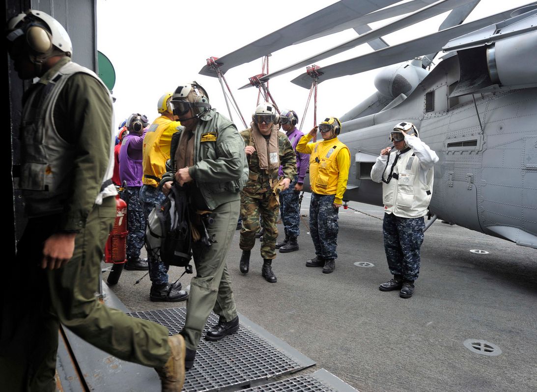 Μέλη των Ελληνικών Ενόπλων Δυνάμεων φθάνουν πάνω στο πολλαπλών αμφίβιο πλοίο επίθεσης USS Bataan (LHD 5). Η Ομάδα Ετοιμότητας Bataan Amphibious είναι σε μια προγραμματισμένη ανάπτυξη στήριξη των επιχειρήσεων θαλάσσιας ασφάλειας, παρέχοντας τη δυνατότητα αντιμετώπισης της κρίσης και το θέατρο προσπάθειες συνεργασίας για την ασφάλεια στην περιοχή του αμερικανικού 6ου Στόλου των επιχειρήσεων. (Πολεμικό Ναυτικό των ΗΠΑ)