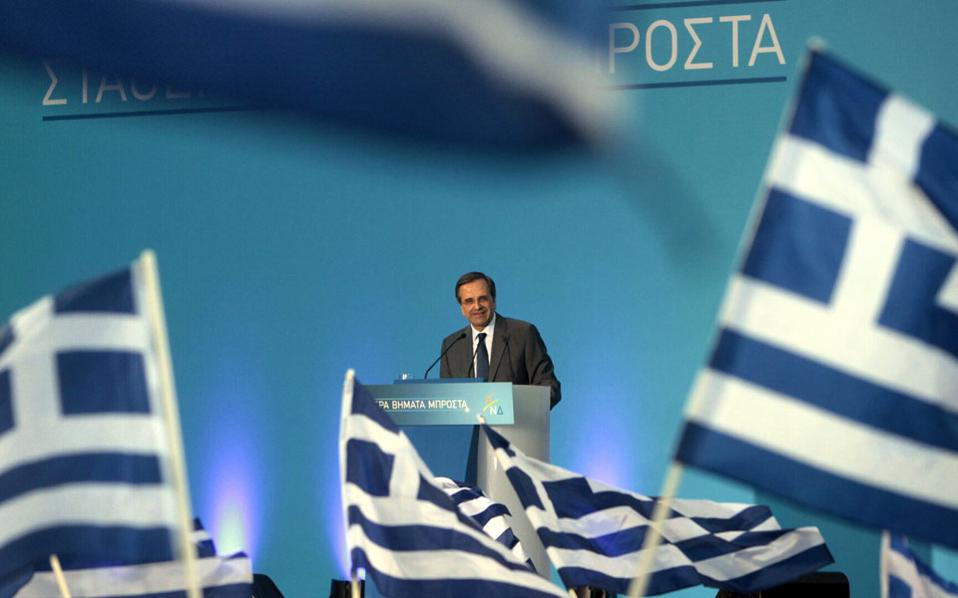“Βγαίνουμε από τα μνημόνια και την κρίση. Δεν θα πω ούτε γι αυτό, ούτε για τα πλεονάσματα, ούτε για την ανεργία που πέφτει ούτε που η Ελλάδα δανείζεται από τις αγορές. Αυτά τα ξέρετε. Όπως ξέρετε ότι κάποιοι δεν θέλουν να βγει από την κρίση, θέλουν να μας γυρίσουν στο χάος. Δεν θα τους αφήσουμε να μας γυρίσουν στο χάος. Θέλουν λένε να ρίξουν την κυβέρνηση. Η ΝΔ τους απαντά: γιατί να ρίξουν την κυβέρνηση τώρα που βρισκόμαστε στο πιο κρίσιμο σημείο; τώρα που στο τέλος του καλοκαιριού θα ρυθμίσουμε το χρέος, τώρα που έρχονται μεγάλες καινούργιες επενδύσεις; γιατί θέλουν να παγώσουν τα πάντα και να φέρουν αστάθεια; Να σας πω, γιατί θέλουν να γυρίσουν την χώρα πίσω στην κρίση. Όλες οι απίστευτες ασυναρτησίες που λένε αρκούν για να δημιουργήσουν ξανά κίνδυνο να βγούμε από το ευρώ. Ο καθένας από εσάς με την ψήφο του πρέπει να αποτρέψει τον κίνδυνο επιστροφής στην αβεβαιότητα”.