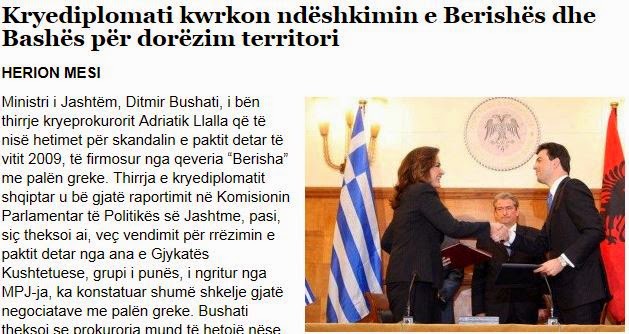 Ο υπουργός Εξωτερικών της Αλβανίας, Ντιτμίρ Μπουσάτι κάλεσε τον επικεφαλής της Εισαγγελίας Αντριάτικ Λάλα, να διενεργήσει έρευνα για το σκάνδαλο της συμφωνία του καθορισμού των θαλάσσιων ζωνών και της υφαλοκρηπίδας με την Ελλάδα που υπεγράφη τον Απρίλιο του 2009.