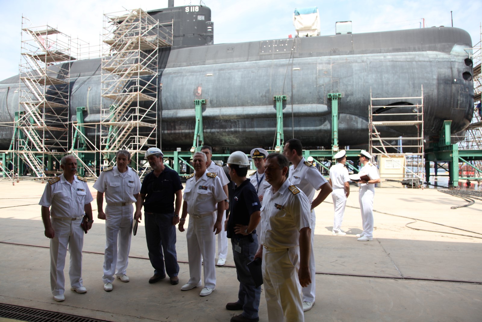 Ο Αρχηγός ΓΕΝ, Αντιναύαρχος Ευάγγελος Αποστολάκης ΠΝ, επισκέφθηκε τα Ναυπηγεία Σκαραμαγκά και ενημερώθηκε από τα στελέχη του Πολεμικού Ναυτικού και τους εργαζόμενους των ΕΝΑΕ για την πρόοδο των εργασιών ολοκλήρωσης των Υποβρυχίων (Υ/Β). Ποιο ήταν το μήνυμα που πέρασε στους εργαζόμενους που ανησυχούν για την στάση της διοίκησης των Ναυπηγείων; “Κουμάντο στο πρόγραμμα των υποβρυχίων κάνουμε εμείς το ΠΝ”,ήταν το νόημα όσων είπε ο Α/ΓΕΝ.O έλεγχος λειτουργίας των συστημάτων των Υ/Β εξελίσσεται χωρίς ιδιαίτερα προβλήματα καθώς δεν έχει εντοπιστεί κάποια σημαντική αστοχία, η οποία θα είχε σαν συνέπεια την παρεμπόδιση της ομαλής συνέχισης του έργου.