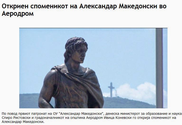 Ο υπουργός Παιδείας και Επιστημών, Σπίρο Ριστόφσκι και ο δήμαρχος της συνοικίας Αεροντρόμ της πόλης των Σκοπίων, αποκάλυψαν, σήμερα, το νέο μνημείο του Μεγάλου Αλεξάνδρου, στο πρώτο δημοτικό σχολείο του Δήμου.