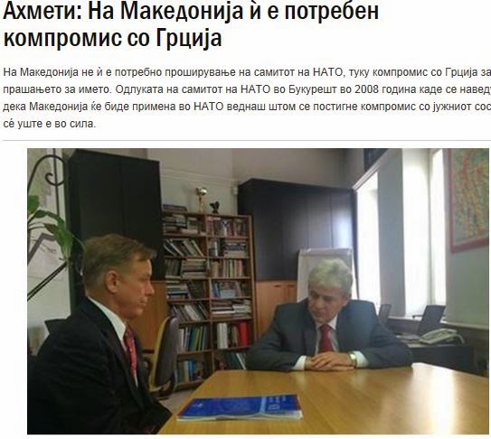 Κατά τη συνάντηση συζητήθηκαν οι πολιτικές εξελίξεις στο νοτιοσλαβικό κράτος και την περιοχή και ο Αχμέτι τόνισε ότι τα Σκόπια πρέπει να έχουν μεγαλύτερη παρουσία στη διεθνή κοινότητα. πηγη