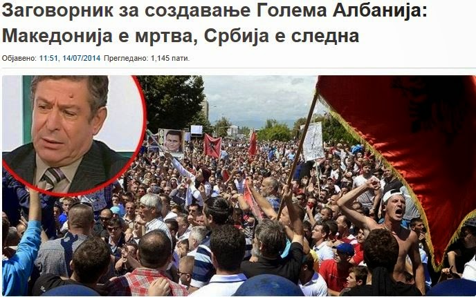 Σύμφωνα με τους ισχυρισμούς του ιστορικού, η Αλβανία θα λάβει ένα μεγάλο μέρος της επικράτειας του νοτιοσλαβικού κράτους, τη μισή περιφέρεια της νότιας Σερβίας και αυτό επιβεβαιώνεται από τις διαδηλώσεις που γίνονται στα Σκόπια και σε άλλες πόλεις, όπου οι Αλβανοί αντιδρούν στην αντιμετώπισή τους, ως πολίτες δεύτερης κατηγορίας.