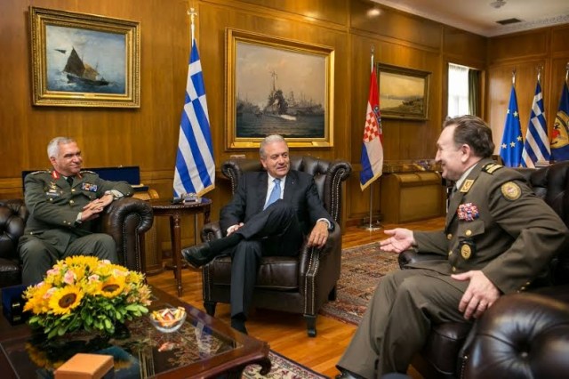 Ο Υπουργός Εθνικής Άμυνας Δημήτρης Αβραμόπουλος δέχθηκε σήμερα τον Αρχηγό Ενόπλων Δυνάμεων της Δημοκρατίας της Κροατίας,Στρατηγό Drago Lovrić, ο οποίος πραγματοποιεί επίσκεψη στη χώρα μας.