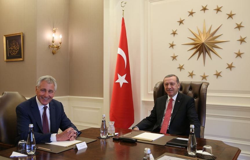 ΦΩΤΟΓΡΑΦΙΑ ΓΡΑΦΕΙΟ ΠΡΟΕΔΡΟΥ: Ο Ταγίπ Ερντογάν με τον υπουργό Αμυνας των Ηνωμένων Πολιτειών