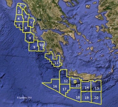 Οι Συμβάσεις Μίσθωσης προς εκτέλεση μεταξύ των Μισθωτών και της Ελληνικής Δημοκρατίας διέπονται από το Ελληνικό Δίκαιο. Η έρευνα και η εκμετάλλευση πρέπει να διεξάγονται σε πλήρη συμμόρφωση με την Ευρωπαϊκή Νομοθεσία για την ενέργεια και το περιβάλλον. Κάθε Αιτών θα καταβάλει στο Υπουργείο τέλος υποβολής αίτησης δύο χιλιάδων Ευρώ για κάθε Αίτηση. Η Αξιολόγηση προσφορών έχει διάρκεια 3 μήνες. Για την υποβολή αίτησης πρέπει να έχουν πληρωθεί οι ακόλουθες προϋποθέσεις: πληρωμή του τέλους υποβολής της αίτησης των 2.000 Ευρώ, Αγορά κατ’ ελάχιστον 1.500 χιλιομέτρων σεισμικών γραμμών PGS MC2D-GRE2012, συμπεριλαμβανομένων όλων των σεισμικών της περιοχής προς παραχώρηση. (Αν ο Αιτών είναι Κοινοπραξία, που αποτελείται από δύο μέλη, τρία ή τέσσερα μέλη η έκπτωση θα είναι της τάξης του 10% , 20% ή 30%) Αγορά της Έκθεσης Ερμηνείας δισδιάστατων δεδομένων του 2014 έναντι ποσού 50.000 Ευρώ.