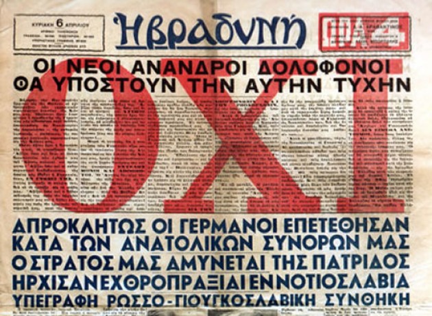 Το πρωτοσέλιδο της εφημερίδας «ΕΛΛΗΝΙΚΟ ΜΕΛΛΟΝ» στις 28 Οκτωβρίου 1940