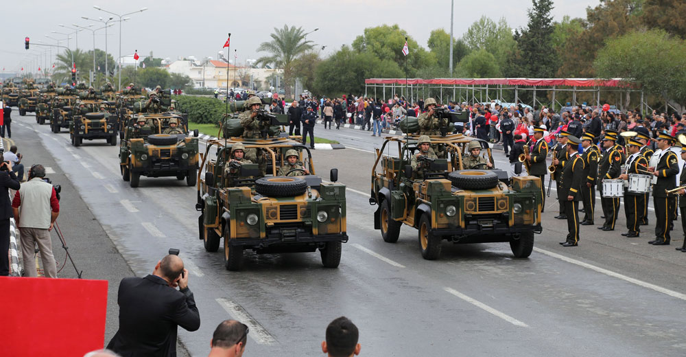 Ο αναπληρωτής πρωθυπουργός της Τουρκίας, Μπουλέντ Αρίντς, και ο πρόεδρος της τουρκικής Εθνοσυνέλευσης, Τζεμίλ Τσιτσέκ, παρακολούθησαν τη στρατιωτική παρέλαση στο κατεχόμενο τμήμα της Λευκωσίας, η οποία έγινε με αφορμή την επέτειο του παράνομου τουρκοκυπριακού κρατιδίου. Ο Τσιτσέκ ανέφερε ότι «δεν πρόκειται να υπάρξει λύση του Κυπριακού, χωρίς αναγνώριση δύο λαών στην Κύπρο και ίσων δικαιωμάτων για τους Τουρκοκυπρίους», οι οποίοι, όπως είπε, δεν αποτελούν μια μειονότητα.