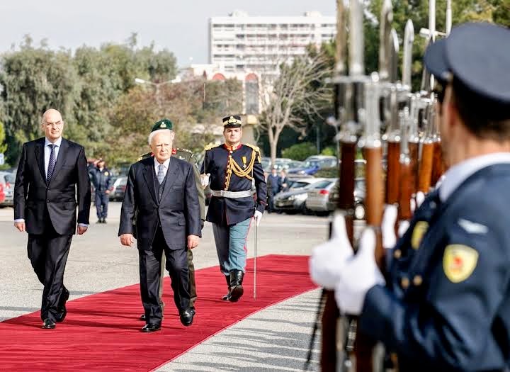 Ο Υπουργός Εθνικής Αμύνης Νίκος Δένδιας προέβη στην ακόλουθη δήλωση κατά την υποδοχή του Προέδρου της Δημοκρατίας Κάρολου Παπούλια, λίγο πριν από την ενημέρωσή του από την πολιτική και τη στρατιωτική ηγεσία στην Αίθουσα Συσκέψεων του ΥΠΕΘΑ: