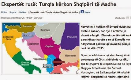 Στην επικράτεια της Αλβανίας, σύμφωνα με τους Ρώσους εμπειρογνώμονες –συνεχίζει το δημοσίευμα- θα περιλαμβάνονται η ως έχει Αλβανία, το Κοσσυφοπέδιο, η Κοιλάδα του Πρέσεβο (νότια Σερβία) και το δυτικό μέρος του νοτιοσλαβικού κράτους-FYROM.