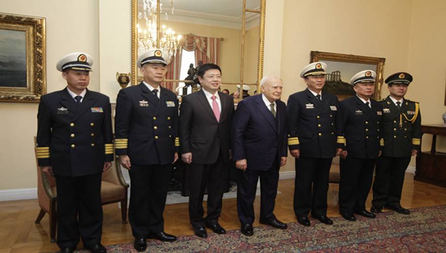 Οι άριστες σχέσεις Ελλάδας-Κίνας επιβεβαιώθηκαν κατά τη συνάντηση του Προέδρου της Δημοκρατίας, Κάρολου Παπούλια, και του Κινέζου ναύαρχου Zhang Chuanshu, τον οποίο συνόδευαν μέλη του πληρώματος του πλοίου «Changbaishan» και ο πρέσβης της Λαϊκής Δημοκρατίας της Κίνας στην Ελλάδα, M.Xiaoli Zou.