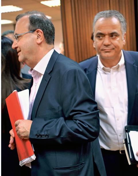 Ο υπουργός Εργασίας και Κοινωνικής Αλληλεγγύης, Πάνος Σκουρλέτης, με τον αναπληρωτή υπουργό Κοινωνικών Ασφαλίσεων, Δημήτρη Στρατούλη