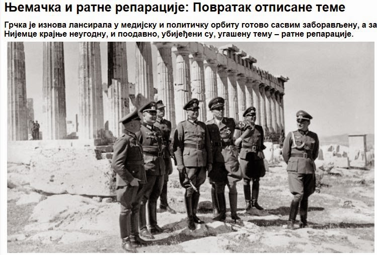«Η Ελλάδα έχει και πάλι ξεκινήσει τόσο από μέσα ενημέρωσης όσο και σε πολιτική δραστηριότητα ένα θέμα που είχε σχεδόν λησμονηθεί και φέρνει τους Γερμανούς σε άβολη θέση, καθώς είχαν πιστέψει ότι το θέμα αυτό είχε σβήσει- τις επανορθώσεις του πολέμου», γράφει η σερβική πύλη ‘Φρόνταλ’.