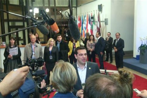 «Ξαναβάλαμε τη διαδικασία στις ράγες», δήλωσε ο πρωθυπουργός Αλέξης Τσίπρας, λίγο μετά τη λήξη της επταμερούς συνάντησης, για το ελληνικό ζήτημα που πραγματοποιήθηκε στο περιθώριο της Συνόδου Κορυφής στις Βρυξέλλες.