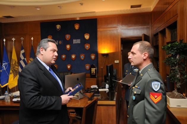 Ο Υπουργός Εθνικής Άμυνας Πάνος Καμμένος τίμησε τον ΕΠΟΠ Λχία (ΠΖ) Παναγιώτη Παπαδόπουλο, ο οποίος βρήκε έξω από τράπεζα και παρέδωσε το χρηματικό ποσό των 3000 ευρώ, χωρίς να δεχθεί ούτε τα εύρετρα που προβλέπονται.