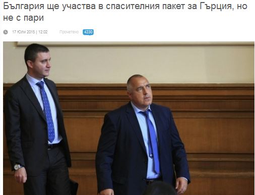 Ήταν ανένδοτος, γράφει το βουλγαρικό δημοσίευμα, ότι «ούτε ένα λέβα δεν πρόκειται να δαπανηθεί για τους Έλληνες» και επεσήμανε ότι είναι ένα καλό σημάδι που όλο οι Βούλγαροι λένε Όχι στην Ελλάδα.