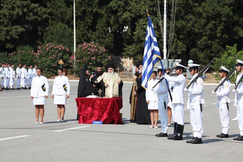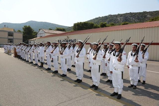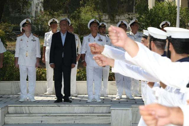 Ο Αναπληρωτής Υπουργός Εθνικής Άμυνας Δημήτριος Βίτσας συνοδευόμενος από τον Αρχηγό ΓΕΝ, Αντιναύαρχο Ευάγγελο Αποστολάκη ΠΝ, παρέστη την Παρασκευή 31 Ιουλίου 2015, στην τελετή ορκωμοσίας των ναυτών της Δ΄ ΕΣΣΟ 2015, που πραγματοποιήθηκε στο Κέντρο Εκπαίδευσης ΠΑΛΑΣΚΑΣ (Κ.Ε. ΠΑΛΑΣΚΑΣ) στο Σκαραμαγκά.