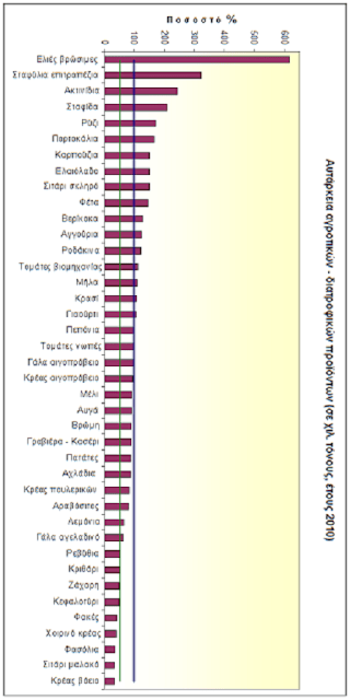 Έτσι, λοιπόν, όπως αναφέρει ο πρόεδρος της ΠΑΣΕΓΕΣ, κ. Τζανέτος Καραμίχας, το ποσοστό αυτάρκειας της χώρας σε μια σειρά βασικών αγροτικών-διατροφικών προϊόντων φυτικής και ζωικής παραγωγής για το 2010, ανήλθε κατά μέσο όρο στο 94% περίπου!