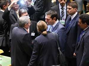 Ο πρωθυπουργός, Αλέξης Τσίπρας, πριν από την έναρξη των εργασιών της Γενικής Συνέλευσης του ΟΗΕ, είχε ολιγόλεπτη συνάντηση με τον Πρόεδρο της Κούβας, Ραούλ Κάστρο.