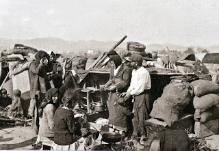Τριάντα χιλιόμετρα μὲ κάρα ποὺ τὰ σέρνουν βόδια, ταύροι καὶ λασπωμένα βουβάλια, μὲ ἐξουθενωμένους, κατάκοπους ἄνδρες, γυναῖκες καὶ παιδιὰ νὰ περπατοῦν στὰ τυφλά…».