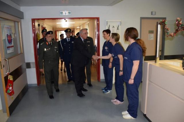 Μιλώντας στο προσωπικού του Νοσοκομείου, τόνισε πως πρόκειται ένα υποδειγματικό νοσοκομείο και πως η ηγεσία του ΥΠΕΘΑ γνωρίζει την κατάσταση και παίρνει τα κατάλληλα μέτρα, ώστε να διατηρηθεί και να ενισχυθεί αυτός του ο χαρακτήρας.
