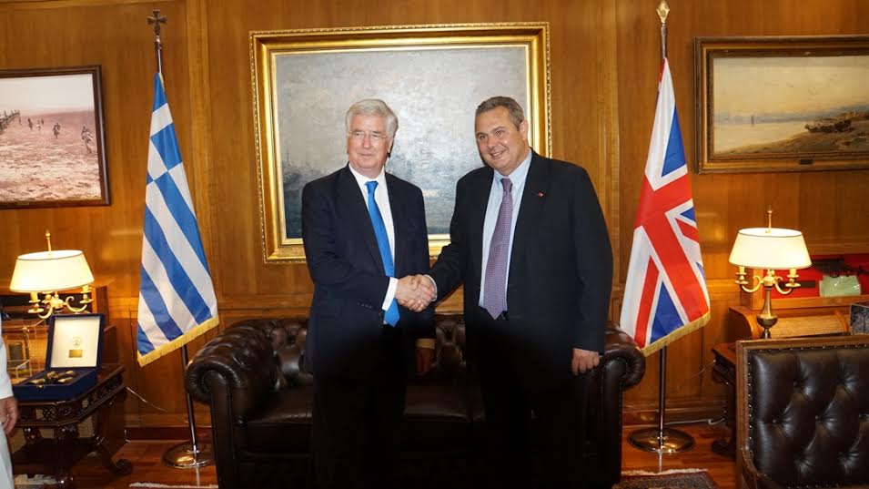 «Με ιδιαίτερη χαρά καλωσορίζω στο Υπουργείο Εθνικής Άμυνας, τον Υπουργό Άμυνας του Ηνωμένου Βασιλείου, τον εξοχότατο κ. Michael Fallon με τον οποίο είχαμε μία εξαιρετικά ενδιαφέρουσα συζήτηση σχετικά με θέματα που απασχολούν την Ελλάδα και τη Μεγάλη Βρετανία, τόσο σε εθνικό επίπεδο, όσο και στο πλαίσιο του ΝΑΤΟ και της Ευρωπαϊκής Ένωσης όπου οι δύο χώρες είναι σύμμαχοι και εταίροι.