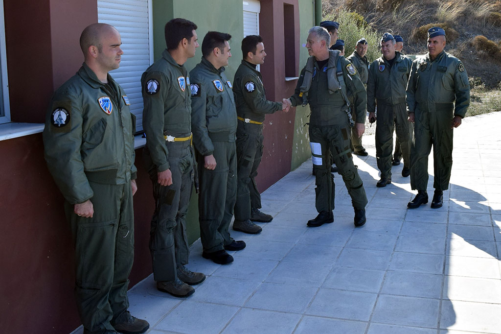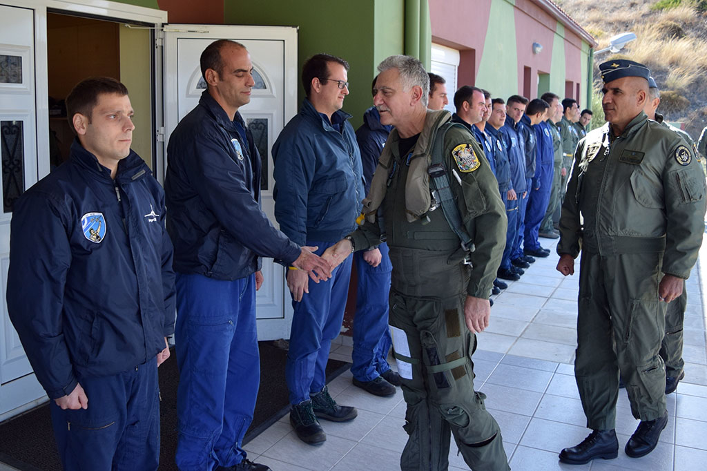 Κατά τη διάρκεια της επίσκεψής του, ο Αρχηγός ΤΑ συνομίλησε με το ιπτάμενο και τεχνικό προσωπικό του κλιμακίου, αντάλλαξε απόψεις και έδωσε κατευθυντήριες οδηγίες.