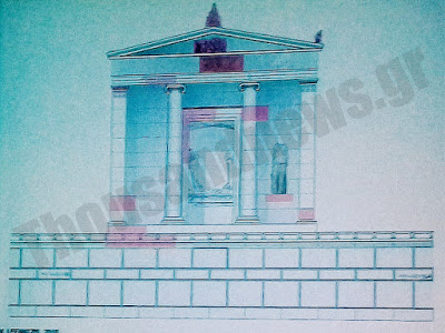 Τεραστίου μεγέθους με γλυπτές συνθέσεις και πλούσιο εναέτιο διάκοσμο ήταν και η εξωτερική πρόσοψη του ταφικού μνημείου όπως αποκαλύπτει ο αρχιτέκτονας της ανασκαφής στον Τύμβο Καστά Μιχάλης Λεφαντζής.