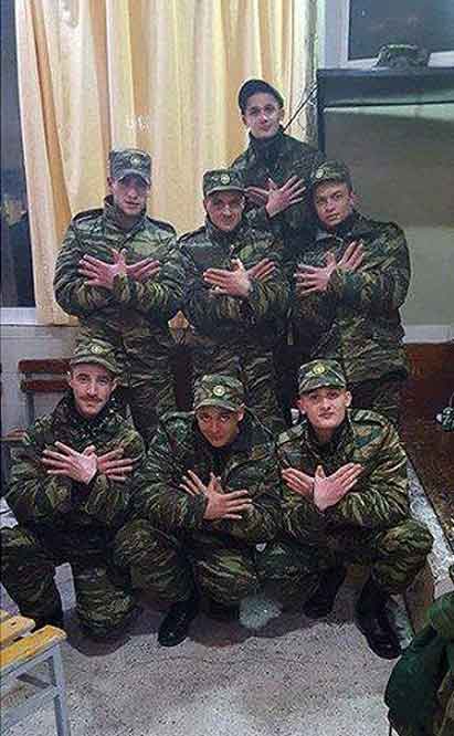 im%cf%87age Published 22 Ιανουαρίου, 2017 at 411 × 666 in Νέα φωτογραφία-πρόκληση: Αλβανοί φορούν το «χακί» του Ελληνικού Στρατού και σχηματίζουν με τα χέρια τους τον αετό της λεγόμενης «Μεγάλης Αλβανίας»