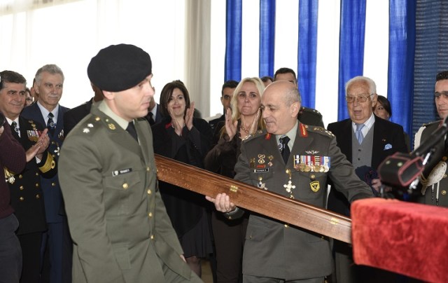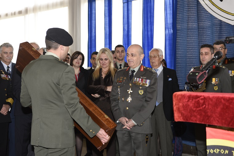 Και μέσα σε κλίμα εμφανούς συγκινήσεως ο Υπίλαρχος Άγγελος Τελλίδης παρέδωσε την σπάθη του Ελληνικού Ιππικού του 1890, δώρο του Αρχηγού ΓΕΣ στον πρώην Αρχηγό ΓΕΣ Στρατηγό πατέρα του, παρουσιαζόμενος κανονικώς και με άψογη προσοχή.
