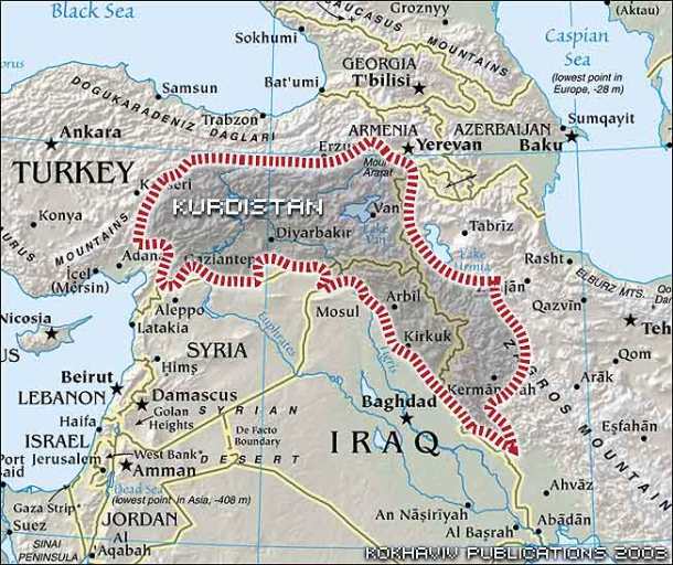 Στο χάρτη αυτό πόλεις της Τουρκίας παρουσιάζονται ως εδάφη του Κουρδιστάν.